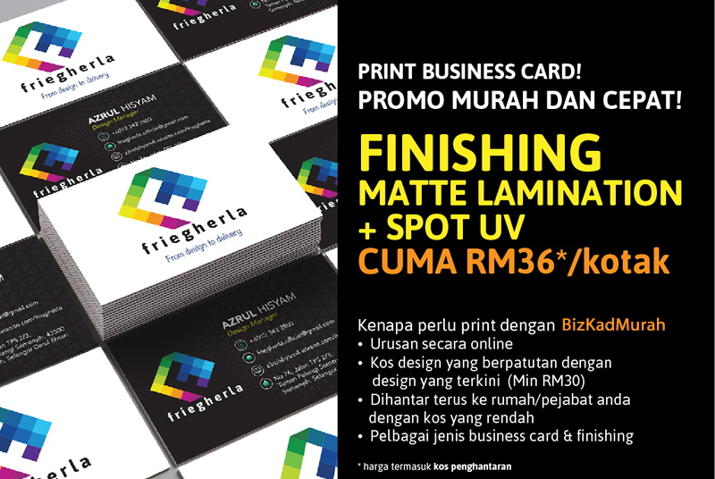 Belum ada design? Jangan bimbang tuan-puan. BizKadMurah Segamat juga ada menyediakan perkhidmatan untuk design mengikut trend terkini. Anda dah ada design tapi nak tukar sikit2 pun boleh. Caj yang kami kenakan adalah sangat minimum dan mampu milik.