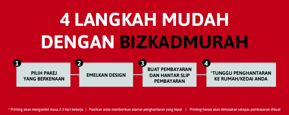 Belum ada design? Jangan bimbang tuan-puan. BizKadMurah Segamat juga ada menyediakan perkhidmatan untuk design mengikut trend terkini. Anda dah ada design tapi nak tukar sikit2 pun boleh. Caj yang kami kenakan adalah sangat minimum dan mampu milik.