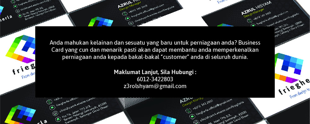 Anda mahukan kelainan dan sesuatu yang baru untuk perniagaan anda? Business Card yang cun dan menarik pasti akan dapat membantu anda memperkenalkan perniagaan anda kepada bakal-bakal "customer" anda di seluruh dunia.
